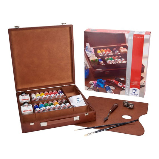 Van Gogh Acrylic Colour Wooden Box Inspiration with 14 Colours in 40ml Tube + Accessories GAC14