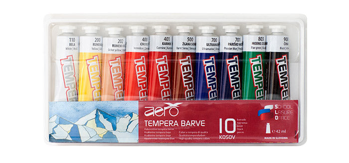 AERO Tempera 42 ml assortment with 10 tubes of 42 ml.