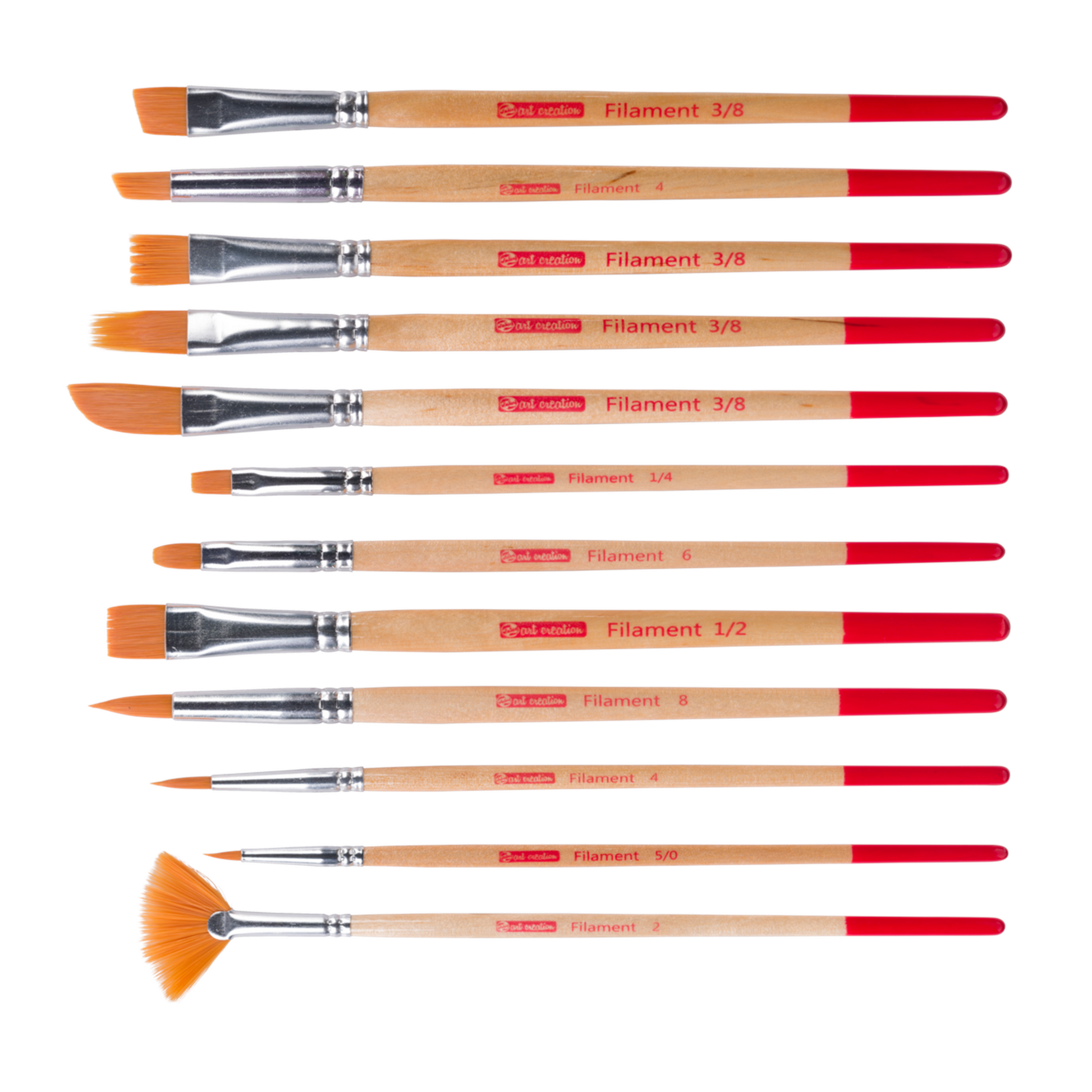 These 12 polyester brushes can absorb a lot of water, which makes it suitable for highly thinned paints such as water colours and inks. The set contains brushes in various shapes, each resulting in different effects or brush strokes.