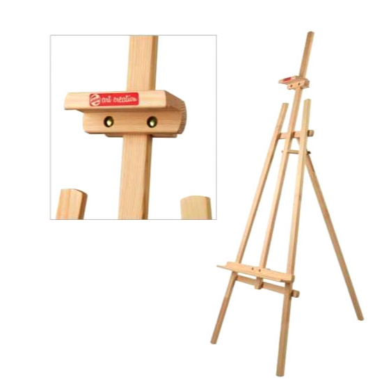 A stable pinewood tripod studio easel. The canvas carrier is adjustable for an optimal working height and is fitted with a canvas clamp for extra canvas stability. Also suitable for 3D stretched canvas. Easy to fold.