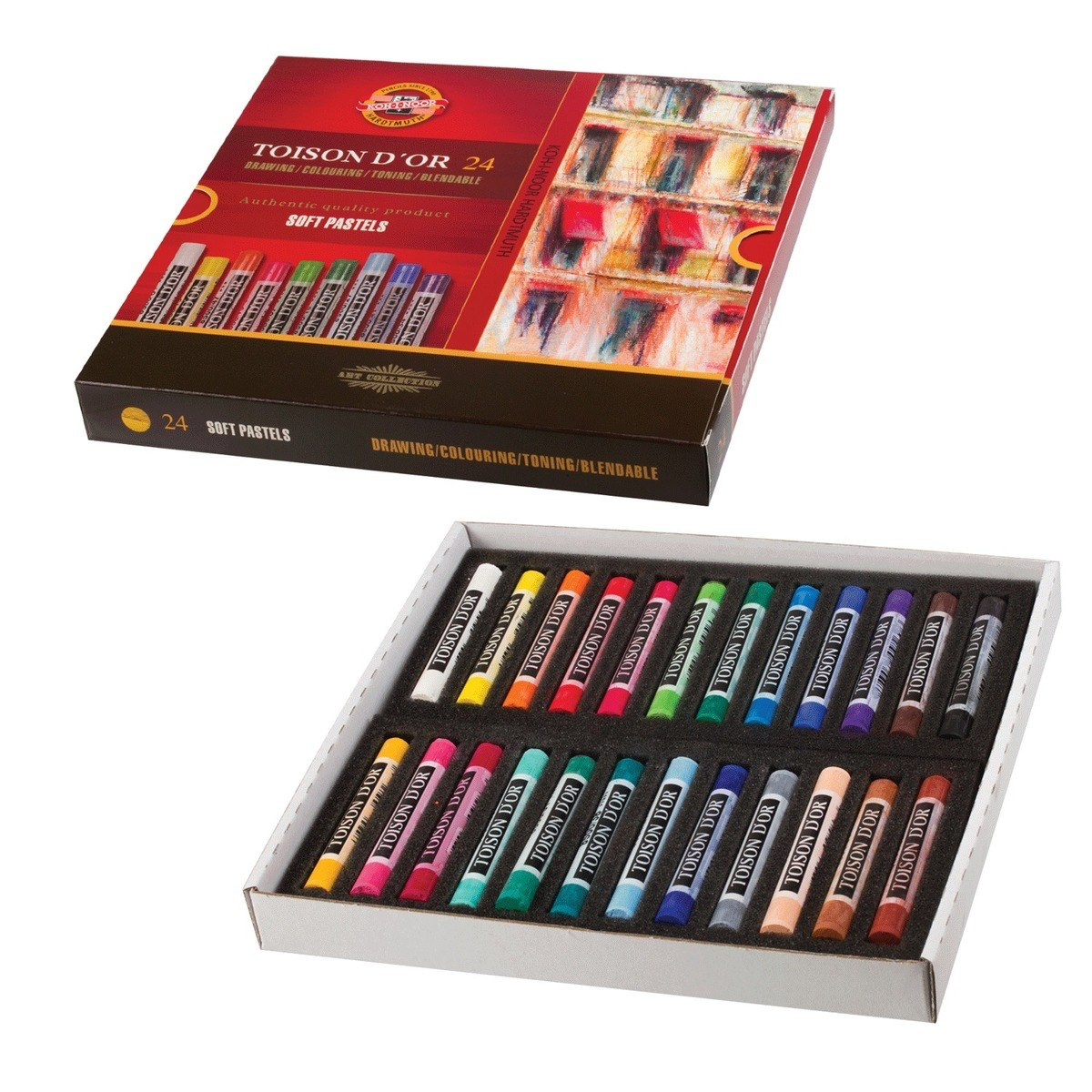 Set of 24 round powdery pastels with a wrap, diameter of 10 mm and length of 75 mm. They have excellent writing properties as well as perfect light fastness. When drawing, it is possible to use a pastel holder KOH-I-NOOR Versatil. Once finished, we recommend to stabilize the drawing with a fixative.