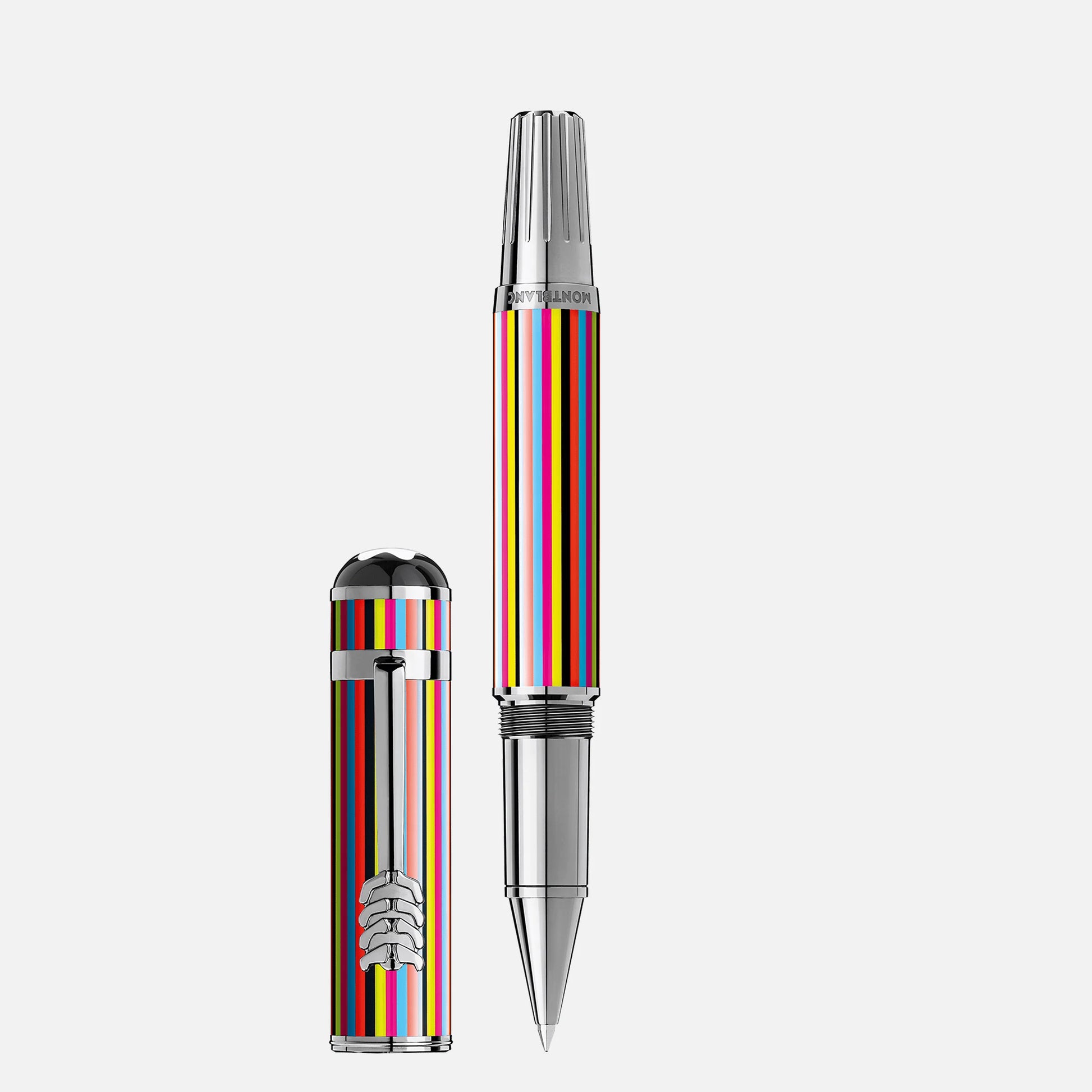 The Beatles are regarded as one of the most famous rock bands of all time. With members John Lennon, Paul McCartney, George Harrison and Ringo Starr, they became widely regarded as the foremost and most influential act of the rock era. In the early 1960s, their enormous popularity first emerged as 'Beatlemania'. As the group's music grew in sophistication, led by primary songwriters Lennon and McCartney, they came to be perceived as an embodiment of the ideas shared by the counterculture of the 1960s. The cone is inspired by the button of the mixing table at the famous Abbey Road studios, while the cap top is inspired by the studio's microphone. The clip symbolizes the iconic mustache of the Beatles on their portrait. The colorful stripes on the lacquered cap and barrel pay tribute to the costumes they wore on the album covers of 'Sgt. Pepper's Lonely Hearts Club Band' and 'Love Me Do'.
