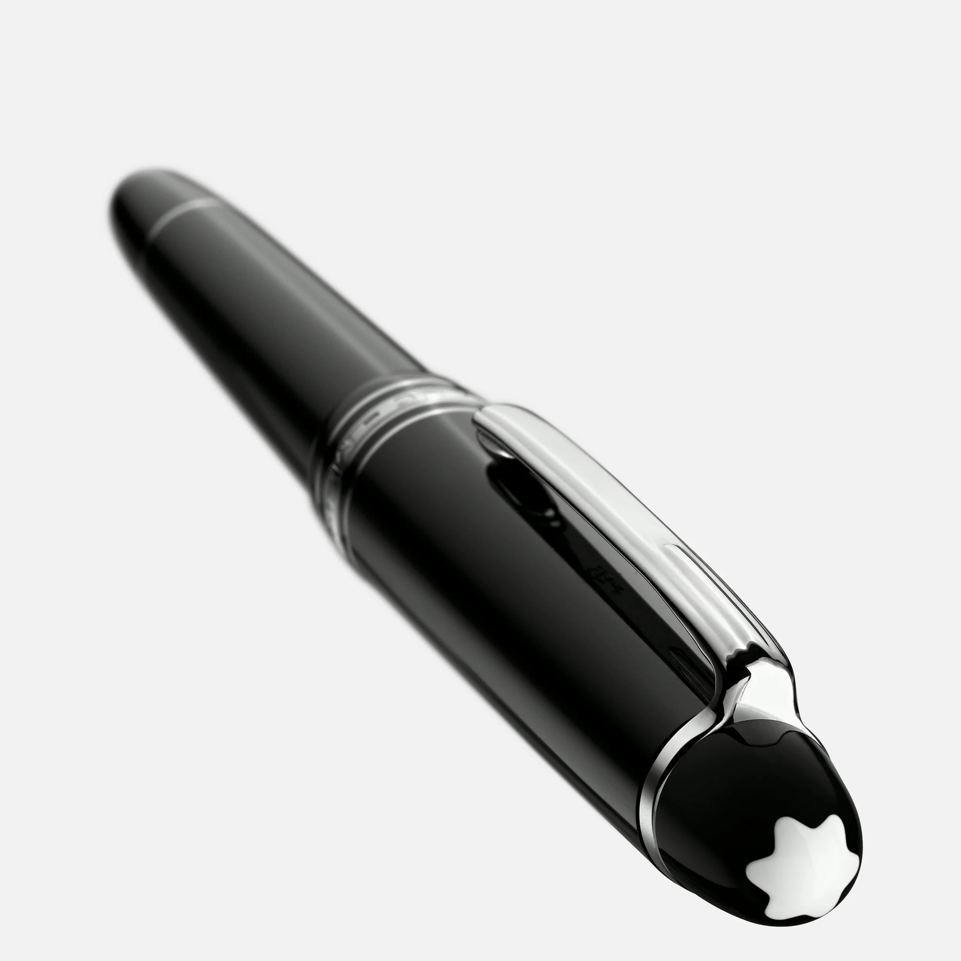 Montblanc Meisterstück LeGrand Platinum-coated collection is a design that writes history. Introduced in 1924, a word meaning “Masterpiece,” the Meisterstück has become one of the symbols for high quality luxury writing. The cap and barrel are crafted in black precious resin featuring the iconic white Montblanc emblem inlaid in the cap top. The fountain pen is adorned with a hand-crafted Au585/14K solid gold nib, rhodium-coated.