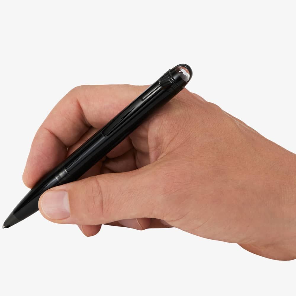 The StarWalker collection is about walking amidst the stars. It's about exploring the cosmos and foreign galaxies, about being part of one of the most mysterious and powerful of humankind’s adventures: space exploration. The StarWalker BlackCosmos collection depicts the depth of space through the shiny black precious resin and the black PVD-coated fittings. The patented StarWalker emblem technology features a grey translucent dome, beneath the floating Montblanc emblem.