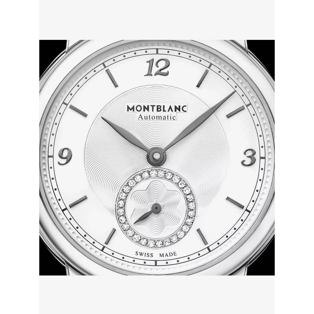 Inspired by the extraordinary Minerva heritage that dates back to 1858, Montblanc introduces ladies' timepieces within its Star Legacy Collection, combining femininity with the spirit of classical fine watchmaking. The Montblanc Star Legacy Small Second features a 32 mm stainless steel case with a curved finish on the sides, giving it a refined shape and pebble effect, along with horns that have steps on the sides.