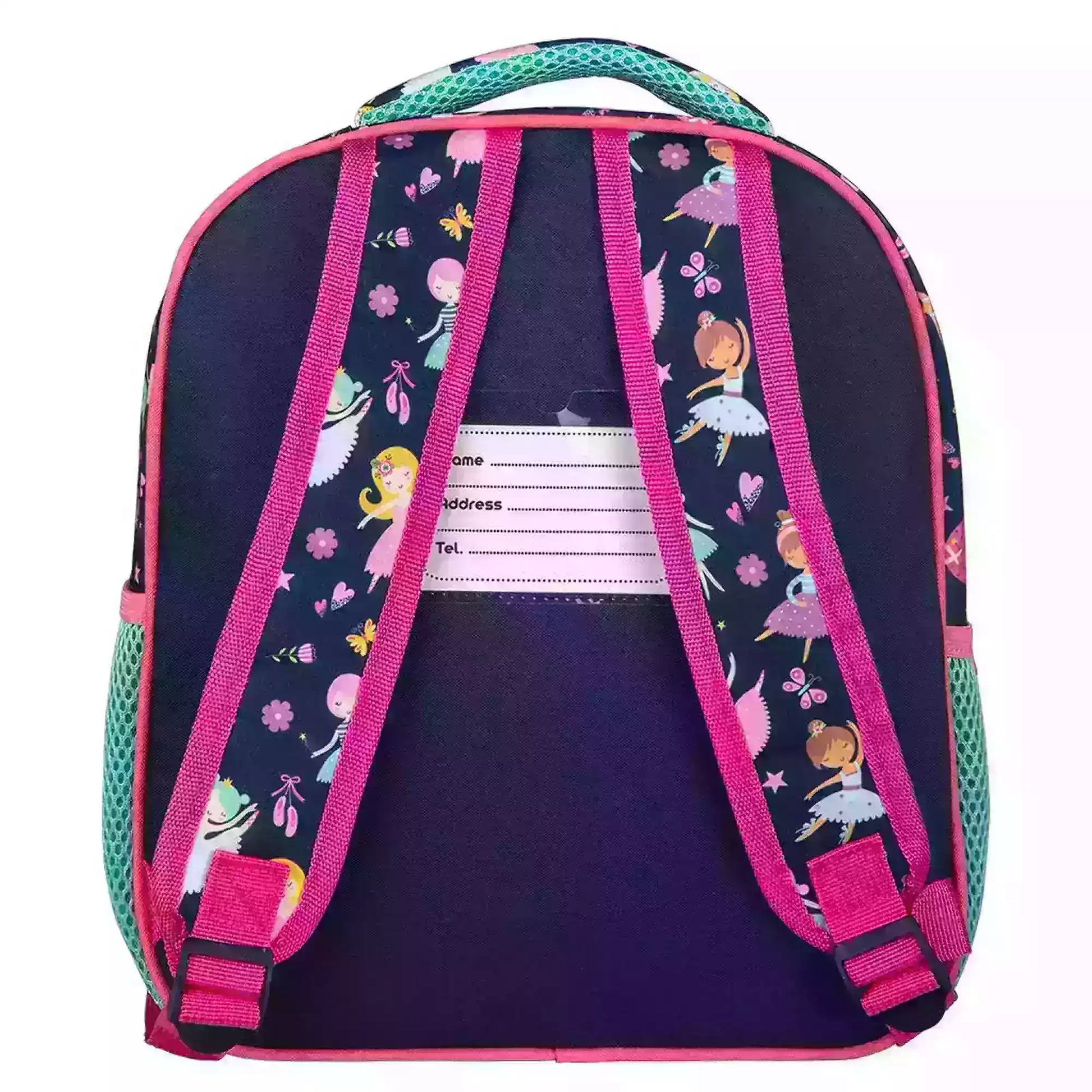 – Design: 2 ballerinas dance between flowers and butterflies, with an extra bow and “Believe In Your Dreams” embroidered on the front, a fun design that adds style to the everyday life of little students at school!