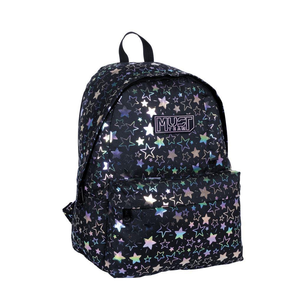 Backpack Must Team Inspiration Gold Hologram Stars 1 Main Case combines unique style with ultimate comfort, offering the ideal choice for everyday use. Its modern design, combined with the high quality of construction, make it the necessary teenage backpack for any activity at school, middle school or high school, or for daily walks!