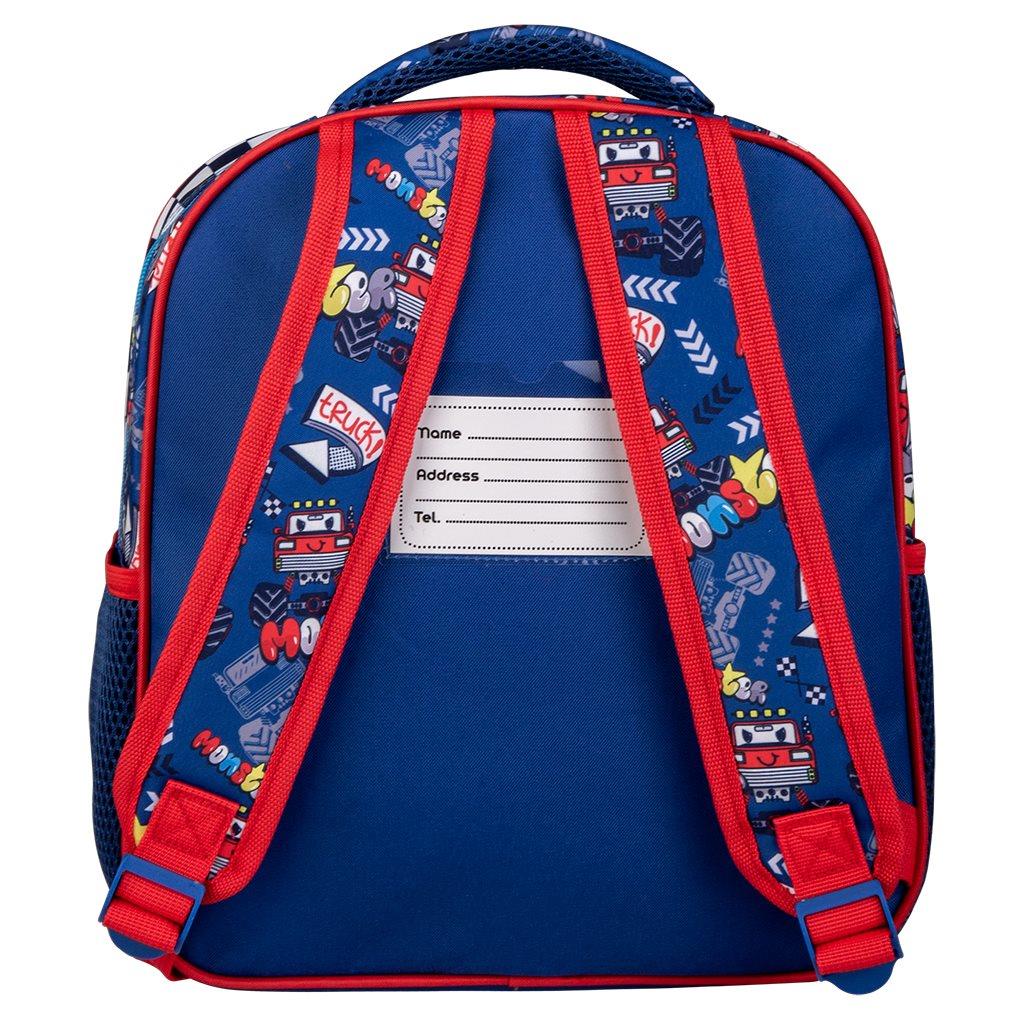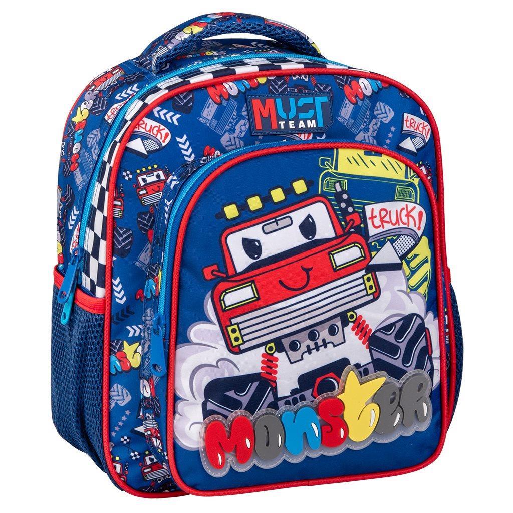 - School Backpack Kindergarten Must Team Monster Truck 2 Cases has 2 spacious compartments for books, notebooks, a case and all the necessary writing materials for school