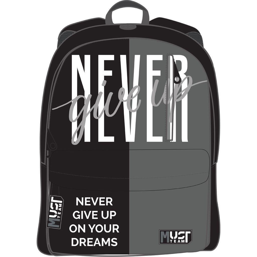 - Backpack Must Team Inspiration Never Give Up 1 Main Case additionally features 1 small front, 1 small vertical front, interior laptop pocket and 1 back pocket for better organization and storage of all necessary items