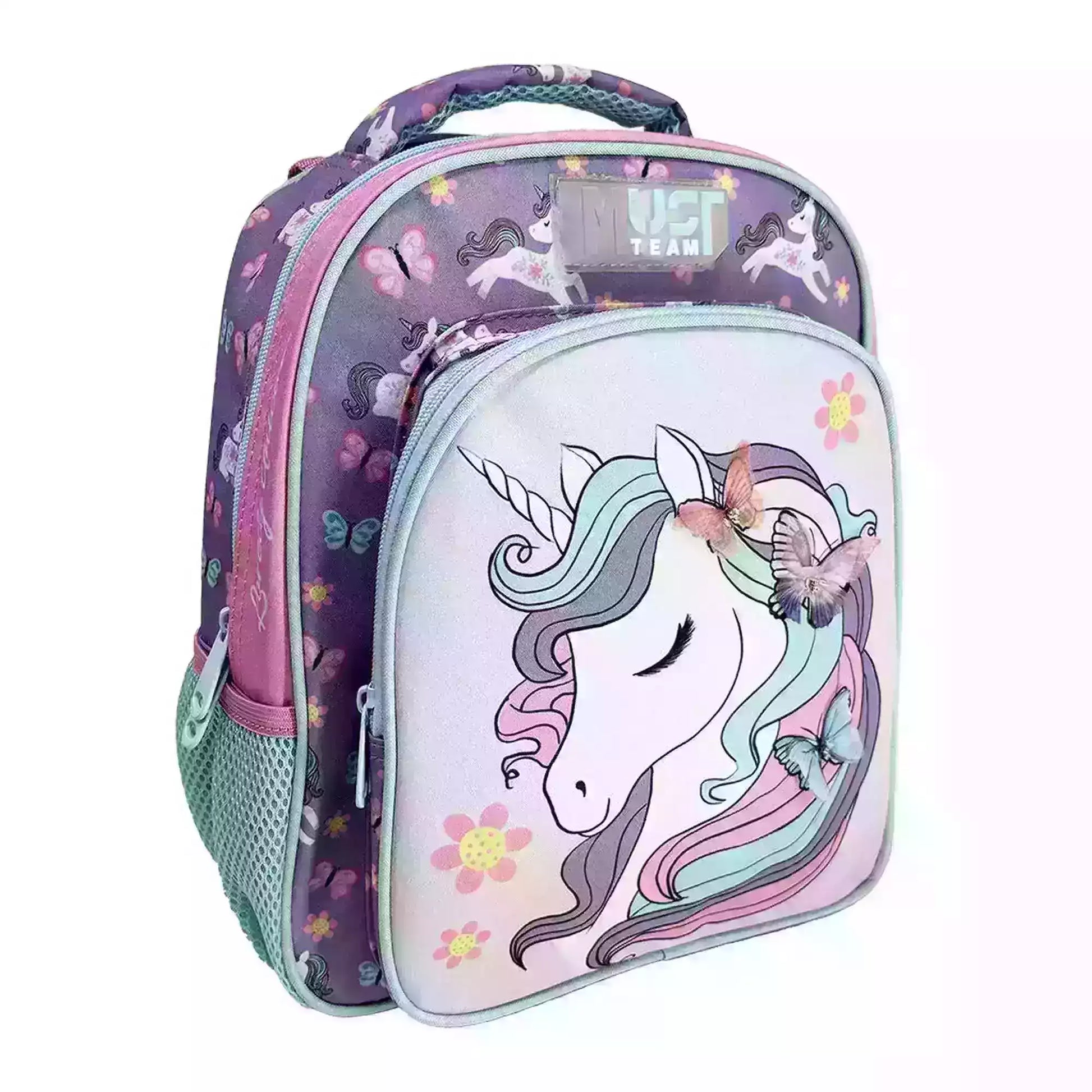 School Backpack Kindergarten Must Team Lovely Unicorn 2 Cases features an eye-catching unicorn design, extra 3D butterflies and the Must Team LED logo on the front, offering a unique and fun school use experience. Ideal preschool backpack that safely, comfortably and easily transports all the necessary school supplies to daycare and kindergarten.