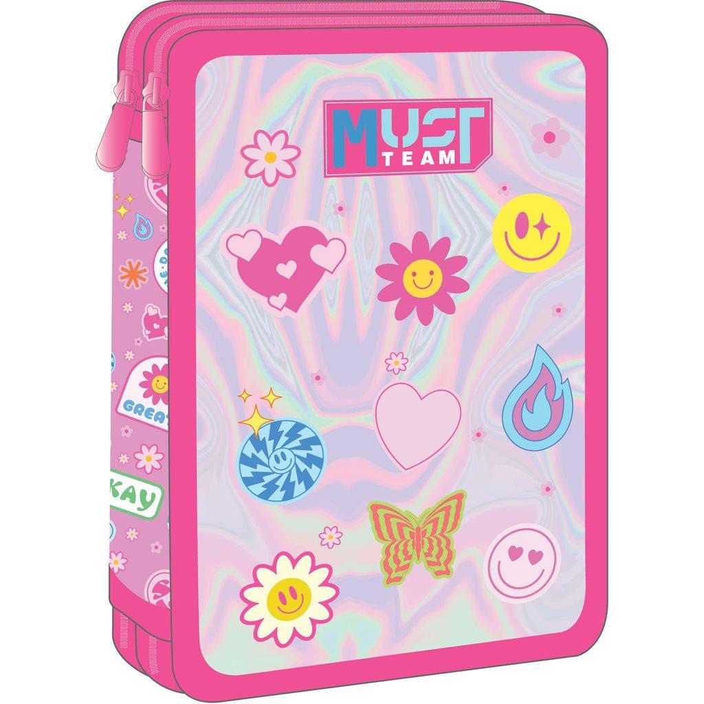 School Pencil Case Double Filled Must Team Good Vibes is the ideal choice for excellent organization and safe transport of school supplies. Fully equipped, it includes pen, pencil, eraser, eraser, rulers, crayons and markers, covering every need at school. Its durable and lightweight design offers practicality and style, making it a must-have for any school bag.