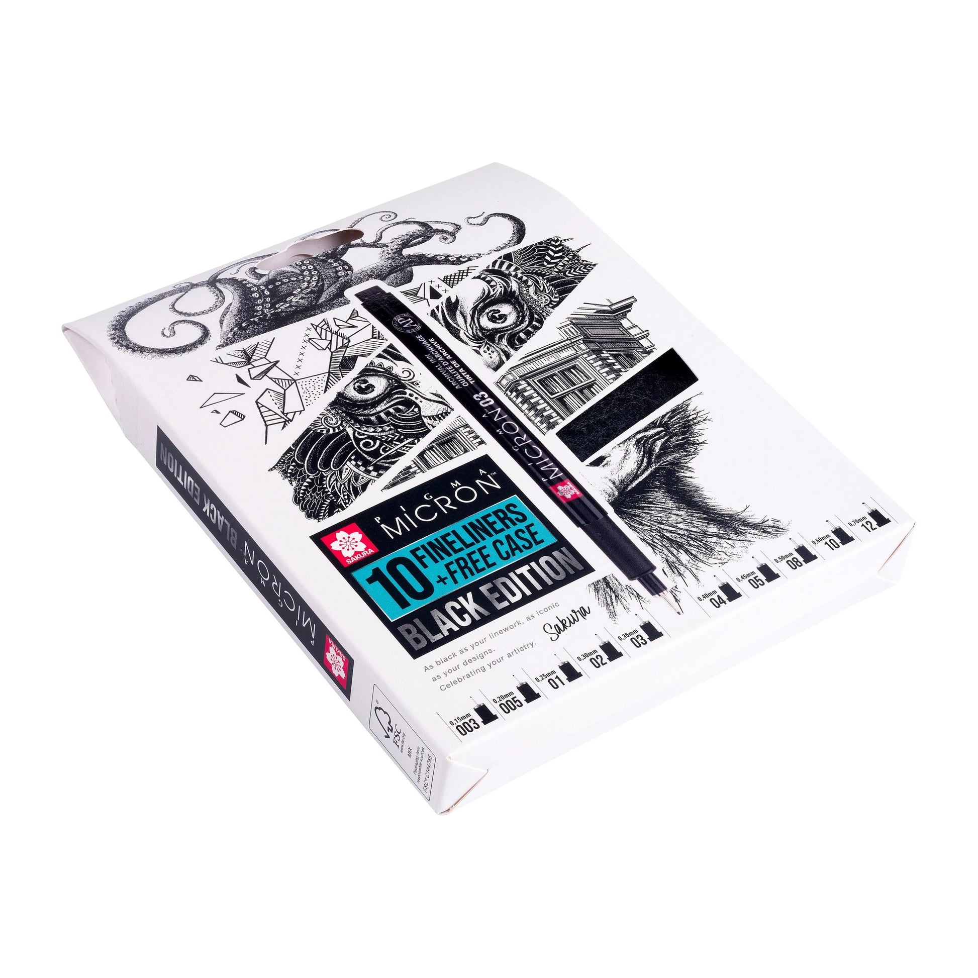 Sakura Pigma Micron Black Edition set + free pen case | 10 sizes, black