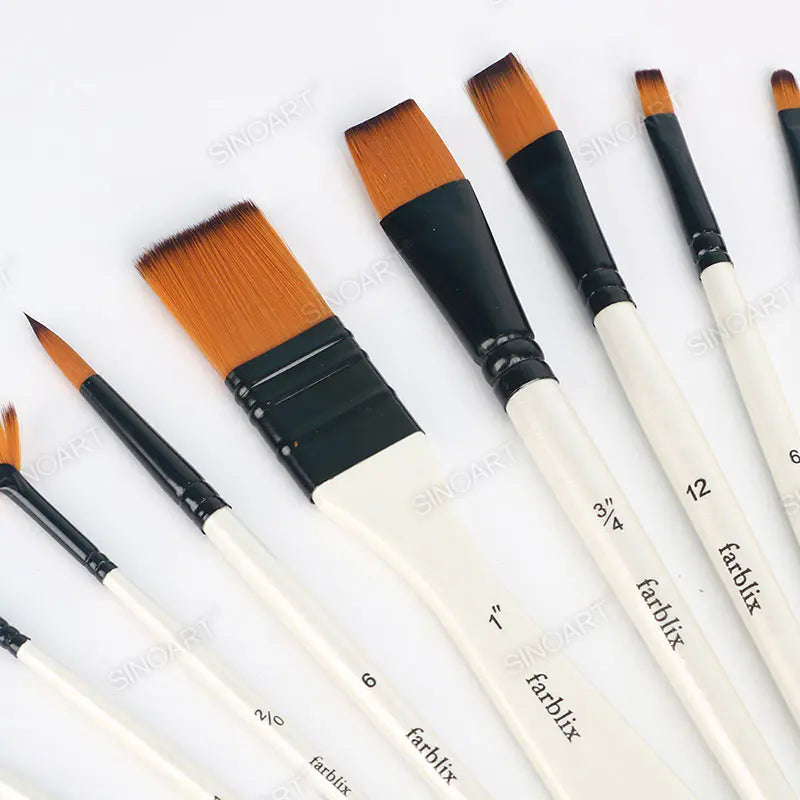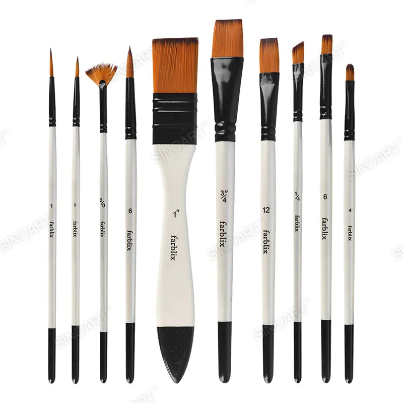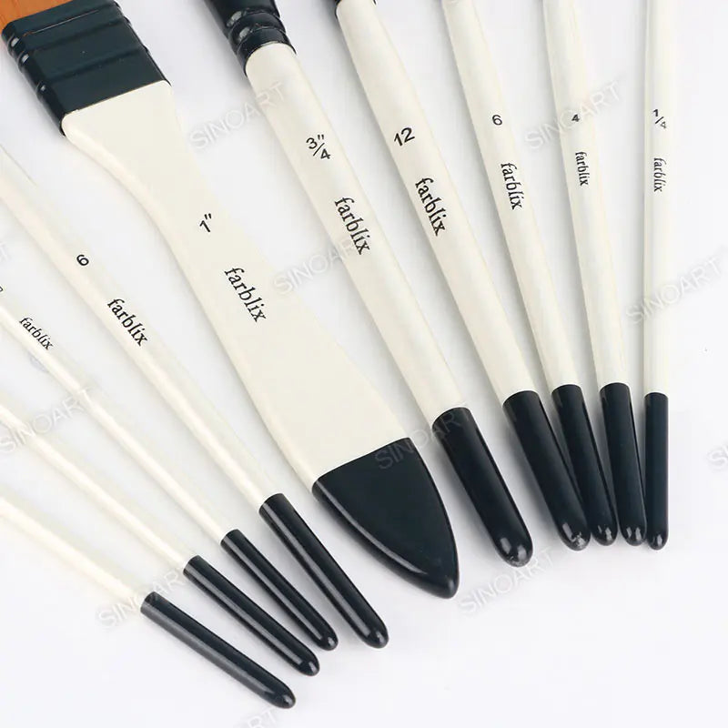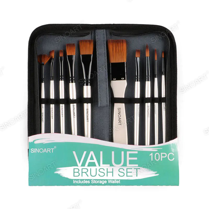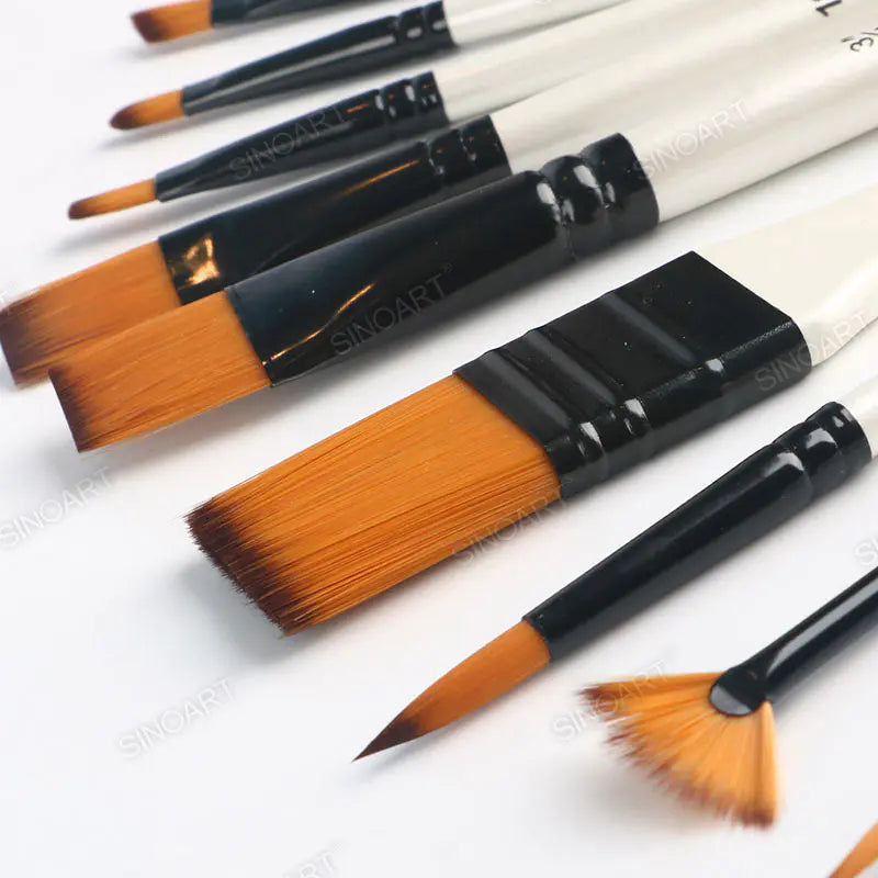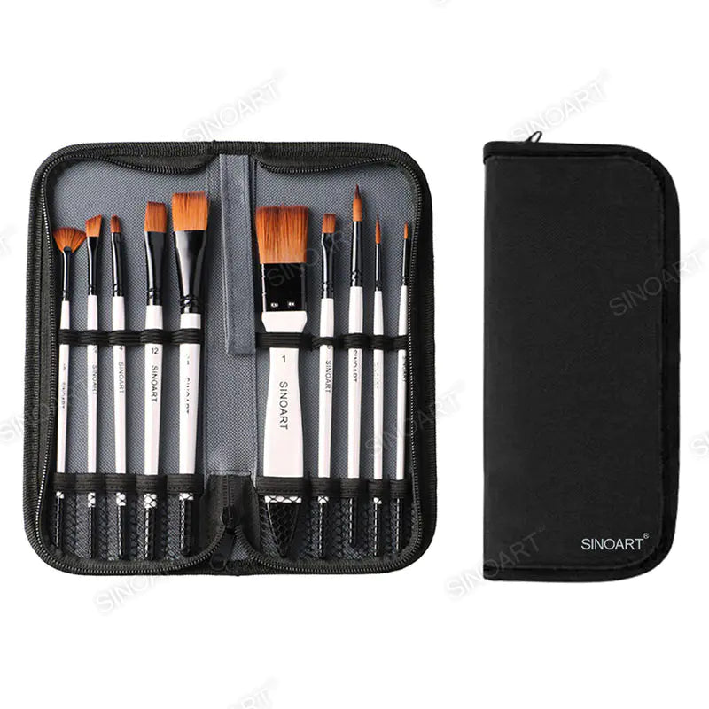 Sinoart 10pcs Synthetic Brush Set Short Handle Brush Set