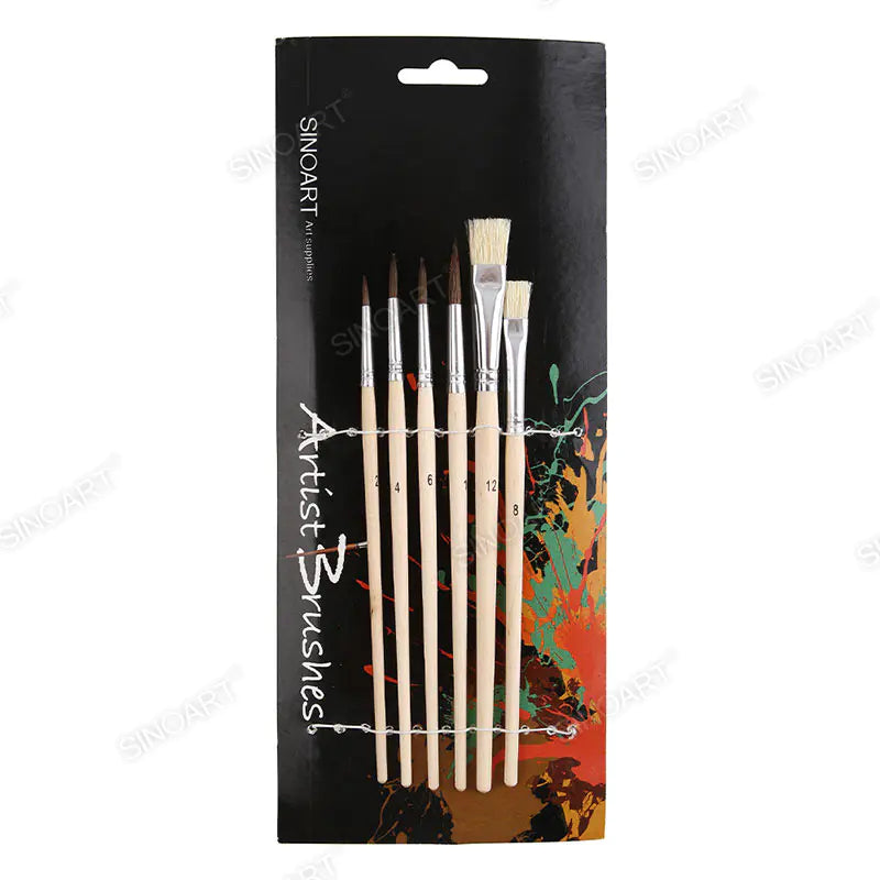6pcs/set, 4 round goat # 2,4,6,10, 2 flat bristle #8,12