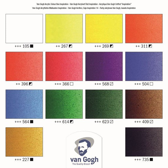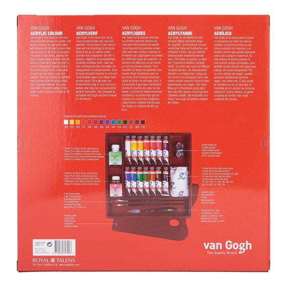 Van Gogh Acrylic Colour Wooden Box Inspiration with 14 Colours in 40ml Tube + Accessories GAC14