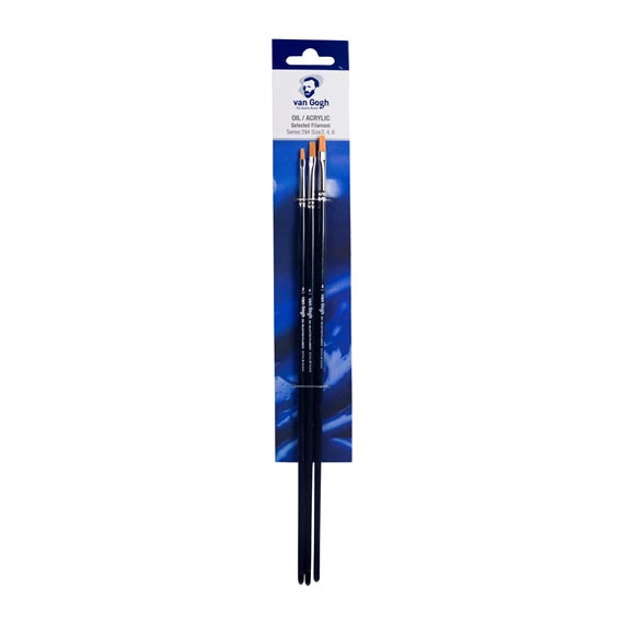 Crafted with care and shaped by hand, this oil and acrylic brush has a flexible hair bundle resistant to wear. The flexibility of the golden synthetic hair bundle makes this brush especially great for acrylic painting, since acrylic colours are normally used in a more liquified consistency. This set contains three different shaped brushes.
