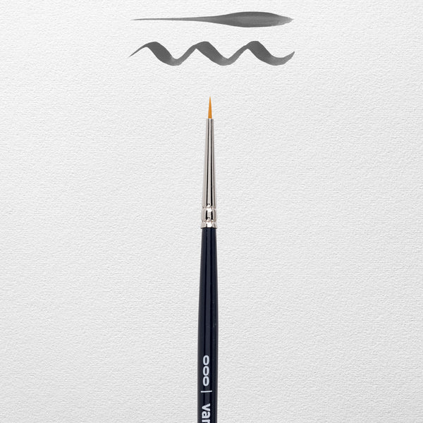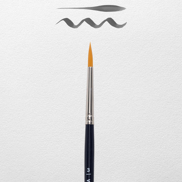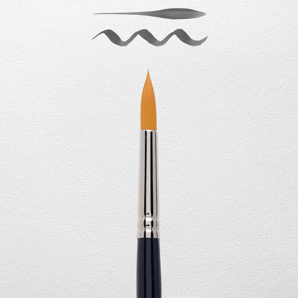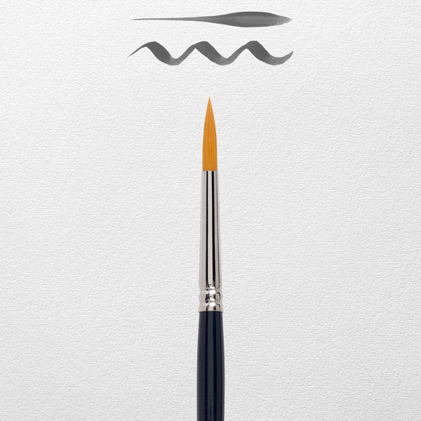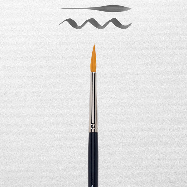 Crafted with care and shaped by hand, this water colour brush has a flexible hair bundle resistant to wear. The golden synthetic hair bundle can absorb a large amount of water and has a round shape with a very fine tip for detailed working. This brush has a hair bundle width of 1.6 mm